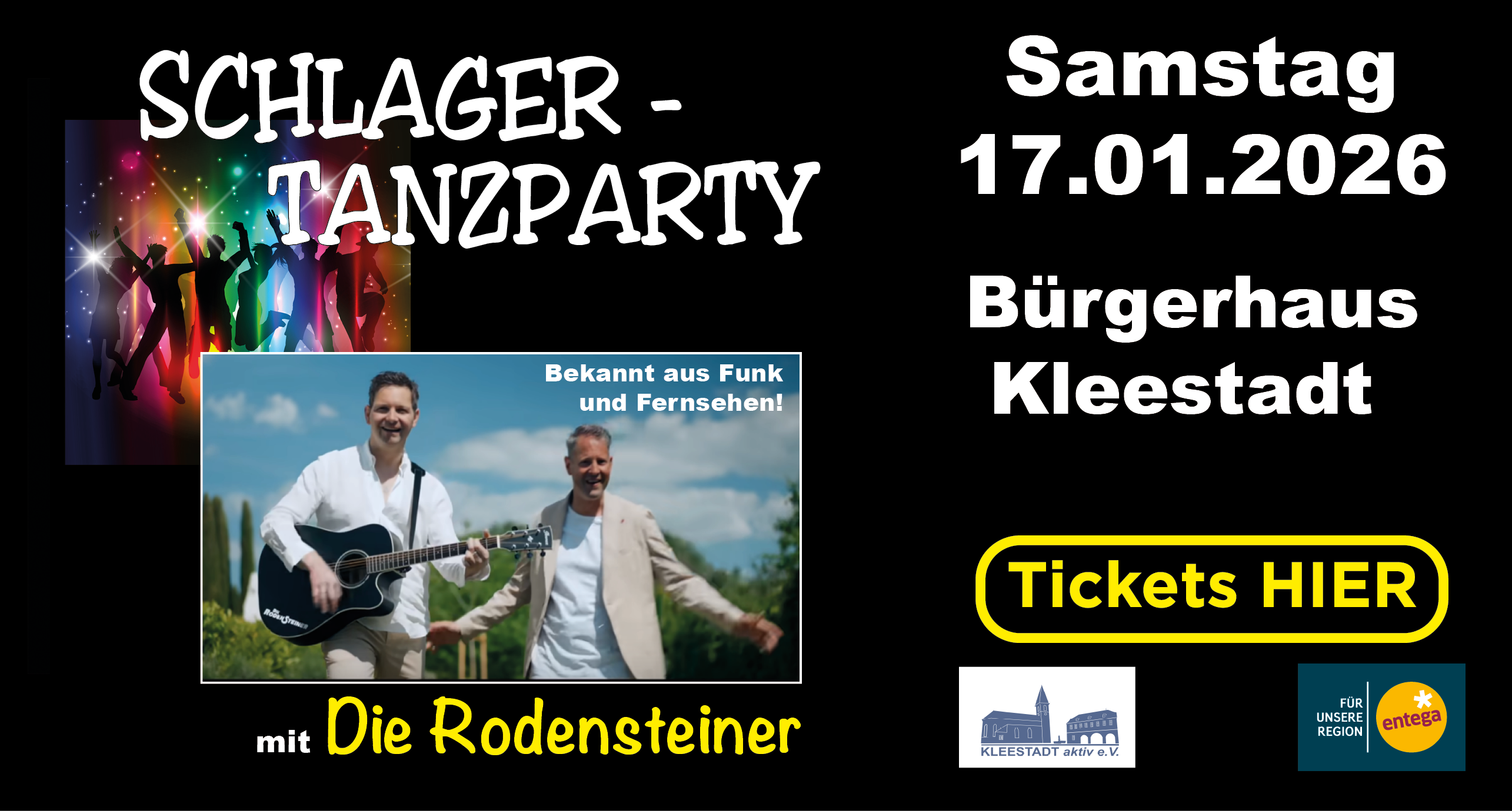 Wie der Vorstand von Kleestadt aktiv e.V. schon im Sommer 2024 beschlossen hat, erwarten Kleestadt und die Fans von gepflegter Musik im Jahr 2025 zwei musikalische Events der Extraklasse. Am Sonntag, den 9. Februar 2025, um 16.00 Uhr, findet in der evangelischen Kirche in Kleestadt unter dem Motto "Winterzauber" strahlende Klänge und strahlende Stimmen, das Liveprogramm von Startenor Bernhard Hirtreiter zusammen mit dem Ausnahmetrompeter Kevin Pabst statt! Bei diesem Galakirchenkonzert vereinen sich Opernstimmen und mit wunderbaren Instrumentalklängen in unterschiedlichen Genres von klassischer Kirchenmusik über Jazz, Pop, Gospel und Schlager. Freuen Sie sich auf eine musikalische Weltreise der besonderen Art! Da ist für jeden Musikgeschmack etwas dabei. Abgerundet und unterstützt wird dieser Nachmittag durch den heimischen Chor Triangel. Einlas ist um 15.00 Uhr. Der Ticketverkauf startet demnächst.